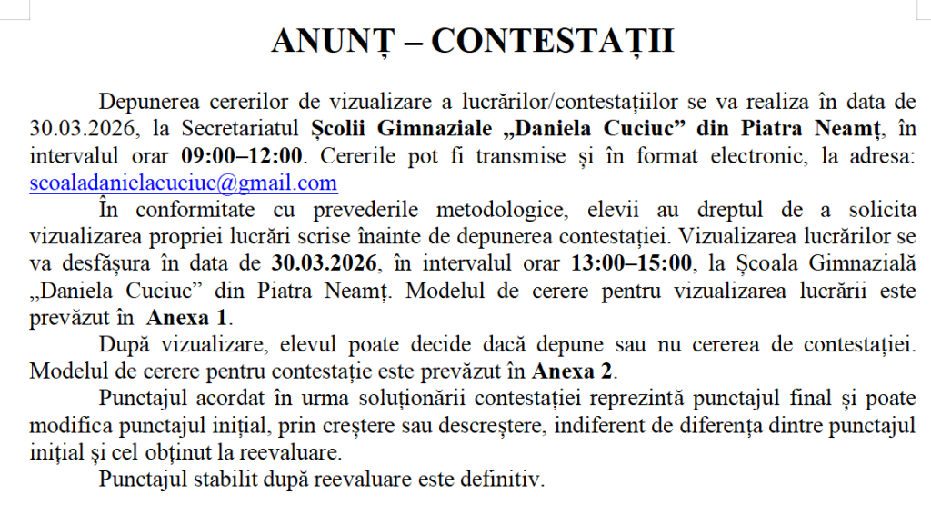 Dosarele de depun la secretariatul Școlii Gimnaziale „Daniela Cuciuc” relocată în Cartierul Speranța în perioada 18 august – 28 august 2025